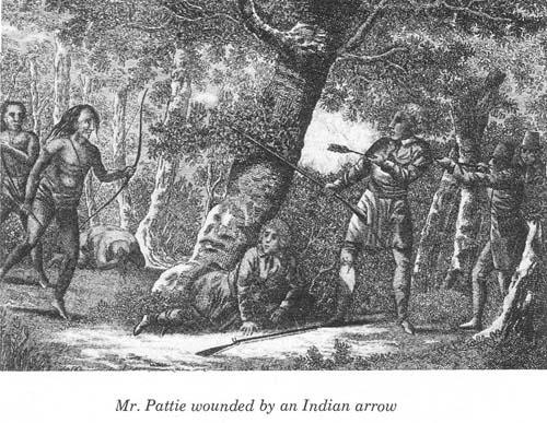 To repel these incursions, these then territories, called out some companies of rangers, who marched against the Sac and Fox Indians, between the Mississippi and the lakes, who were at that time active in murdering women and children, and burning their habitations during the absence of the male heads of families. When Pattie was appointed lieutenant in one of these companies, he left his family at St. Charles' where he was then residing. It may be imagined, that the condition of his wife was sufficiently lonely, as this village contained but one American [ix] family besides her own, and she was unable to converse with its French inhabitants. His company had several skirmishes with the Indians, in each of which it came off successful.