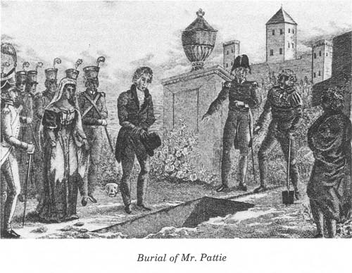 In this remote wilderness, Mr. Pattie lived in happiness and prosperity, until the mother of the author was attacked by consumption. Although her husband was, as has been said, strongly endowed with the wandering propensity, he was no less profoundly attached to his family; and in this wild region, the loss of a beloved wife was irreparable. She soon sunk under the disorder, leaving nine young children. Not long after, the youngest died, and was deposited by her side in this far land.